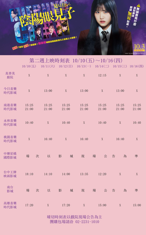 【陰陽眼見子】10/10(五)-10/16(四)上映時刻一覽表📢