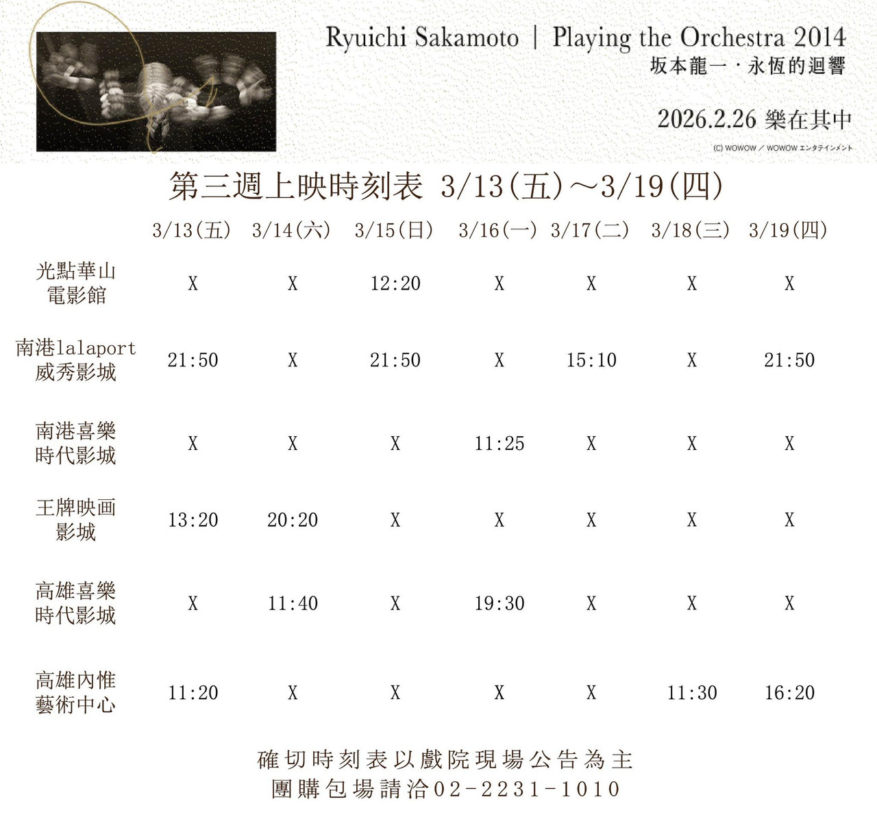 ¡iÂŦâ¨k«Ä¨Æ¥ó¡j¡iRyuichi Sakamoto | Playing the Orchestra 2014 ~ ûd¥»Às¤@・¥Ã«íªº°jÅT¡j3/13(¤)-3/19(¥|)¤W¬M®É¨è¤@Äýªí📢